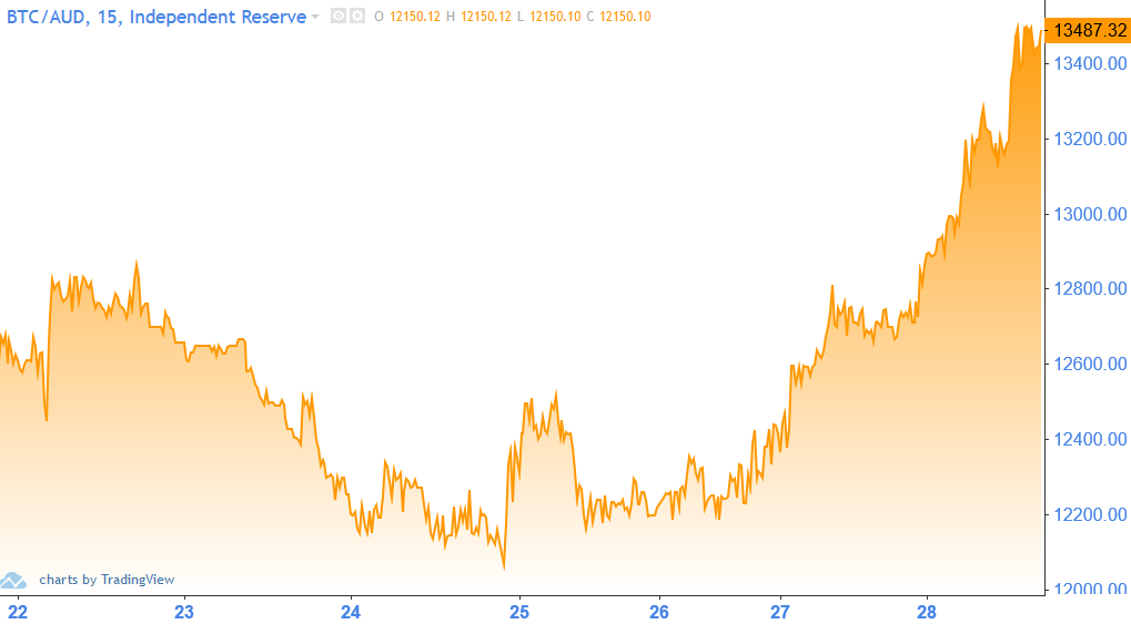 Bitcoin is up 6.4% in the past 24 hours to trade above $13,450 at the time of writing. That’s a 2.6% increase on the same time last week, and 22% for the month. With the exception of XRP (-1.4%) everything else in the top ten is also up on seven days ago: Ethereum (2.3%), Bitcoin Cash (4.5%), EOS (9%) and Litecoin (2.3%). Stellar, at No.12, lost 5.6% this week.
